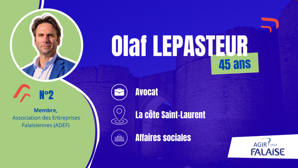 👤 Olaf est bien plus qu’un colistier, c’est un homme à l’écoute et fidèle. Avocat, il a à cœur de s’engager pour les autres. Sa boussole est le lien social, il est très attaché aux valeurs familiales et souhaite contribuer à créer du lien entre les générations.